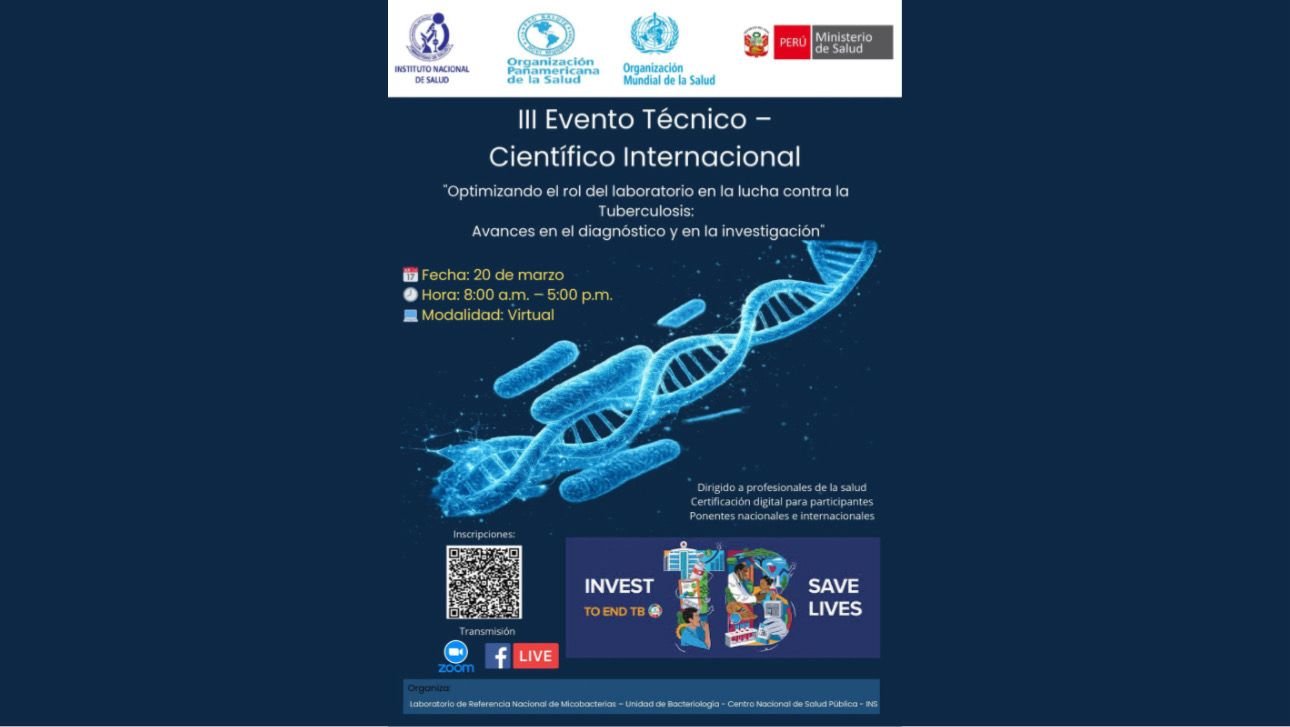 El Ministerio de Salud del Perú invita a participar en un importante encuentro internacional dedicado a la investigación y avances en el diagnóstico de la tuberculosis (TB). Este evento reúne a expertos nacionales e internacionales que compartirán sus conocimientos y experiencias en el campo, destacando los progresos recientes en la lucha contra esta enfermedad. La tuberculosis sigue siendo un desafío global, y este tipo de foros es fundamental para la colaboración entre investigadores, médicos y responsables de salud pública. Invitar a todos a sumarse a esta iniciativa es una oportunidad de aprender, compartir y contribuir al bienestar de la población. ¡La investigación y el trabajo en conjunto son claves para vencer la tuberculosis y mejorar los métodos de diagnóstico en el Perú y en el mundo!